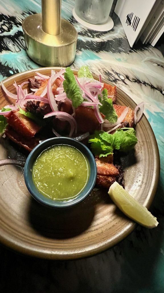 Though 9 Lives calls itself a bar which serves meals, with its in depth Mexican impressed menu, it is also a restaurant which specialises in cocktails. We take yellow and blue nachos with recent, chunky, lemon infused guacamole and a few chicharron which is double cooked pork stomach. The pork is virtually piglet in measurement and is a combination of crunchy and succulent and comes with salsa verde for dipping and a purple onion salad. Dishes are designed for sharing so we additionally take a Camarones taco – King Prawn with avocado cream and pineapple salsa. Additionally served in blue tortillas, the prawns are chunky, chargrilled, just a little spicy and embellished with stringy, pickled onions.