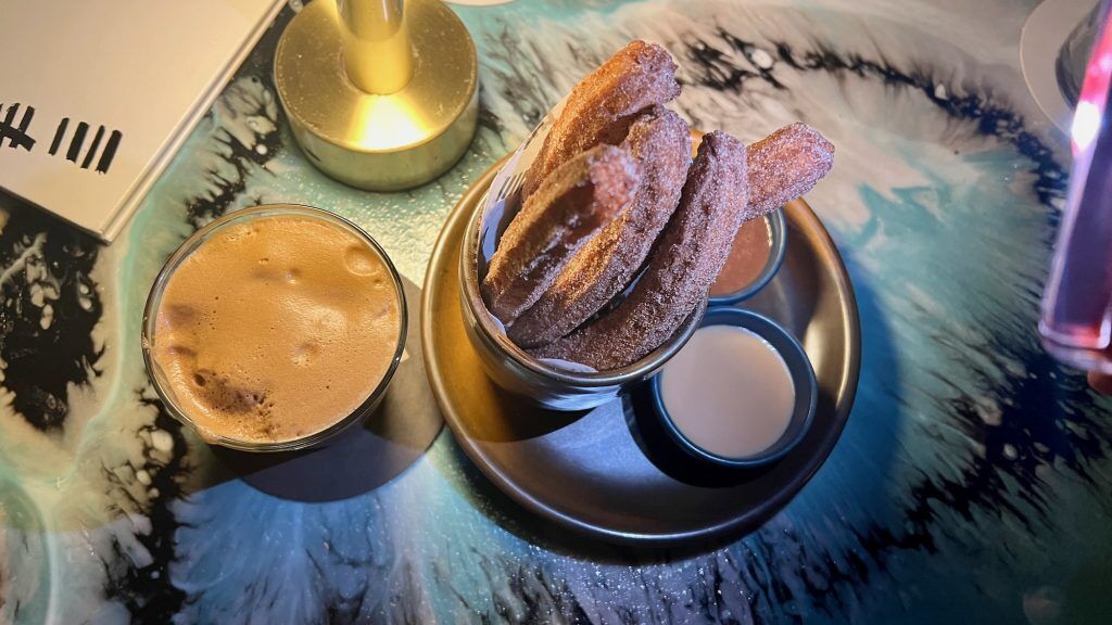 The Churros de la Calle seems like a candy twist on a bunch of bananas or a sugary cactus plant. The churros are sprinkled in cinnamon and include dipping bowls brimming with luxurious chocolate salsa and dulce de leche. It’s an indulgent option to end a flavourful night which we depart satiated and light-headed.