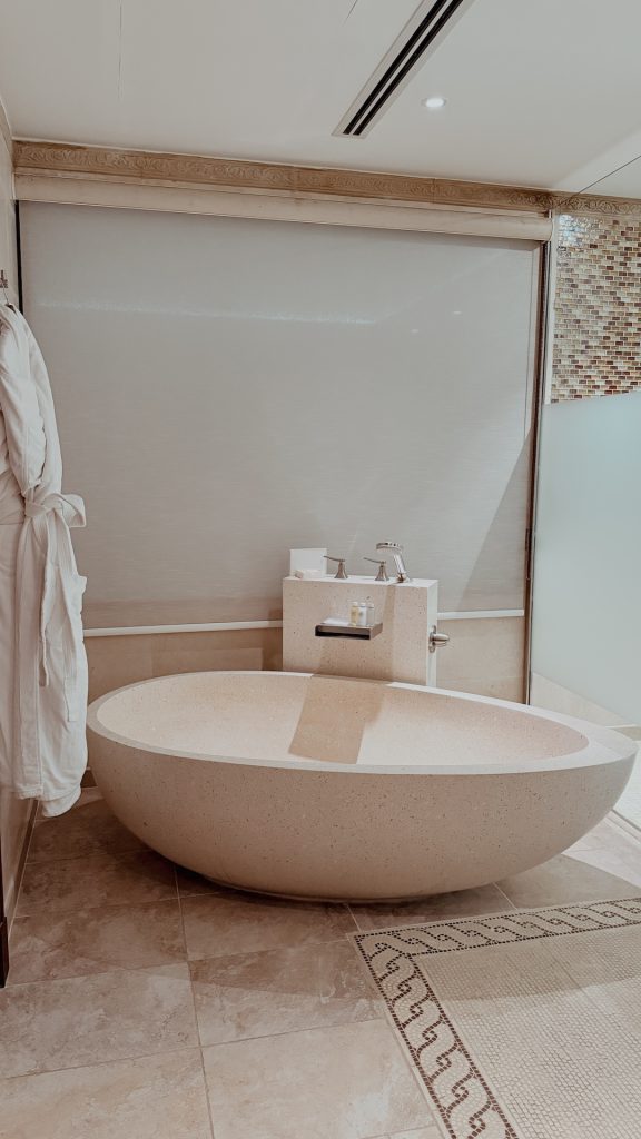 I stayed within the Premier Sea View Room for 2 nights which got here with a lovely view of Doha’s skyline framed by the shimmering sea. With floor-to-ceiling home windows permitting pure mild to flood the area, it was the proper setting to benefit from the sundown glow over the water earlier than indulging within the eating delights on supply at one of many resort’s eating places.