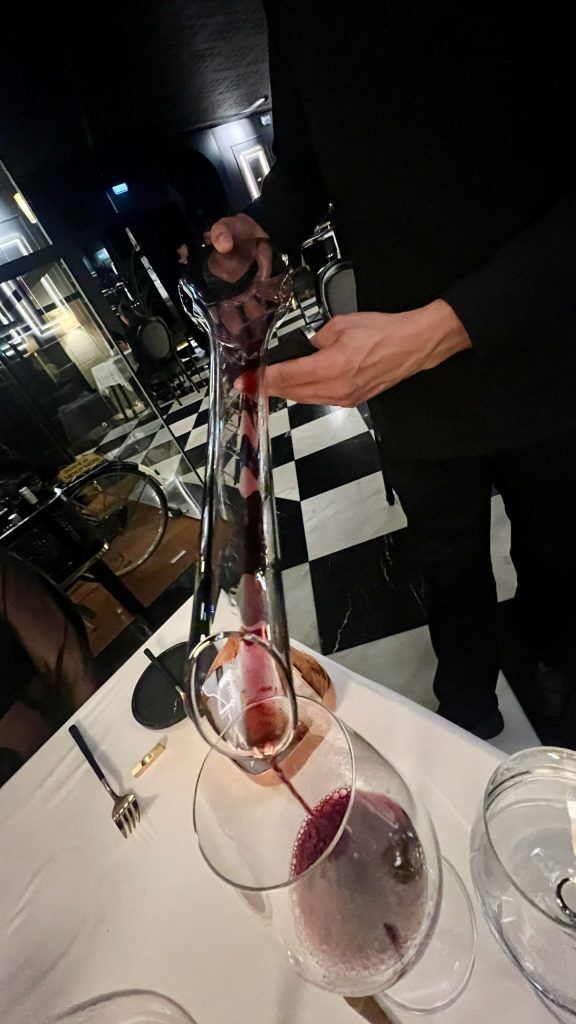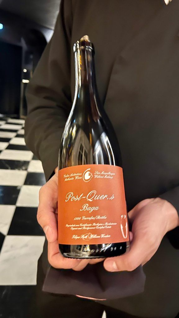 Wagner retains the wine flowing thick and quick. We’ve got Guri by Vinvevinu, now we have Lacrau Garrafeira, now we have Vinha Paz Reserva. We’ve got a blind tasting session with the wine, too, the place we fail miserably to establish what we’re ingesting after which now we have wine from a bottle which is rarely opened. Virtually like a magic trick, that is made attainable by a Coravin system, particularly invented to pour wine with out eradicating the cork, in order that the bottle doesn’t go off should you don’t fancy ingesting all of it.