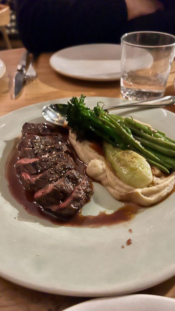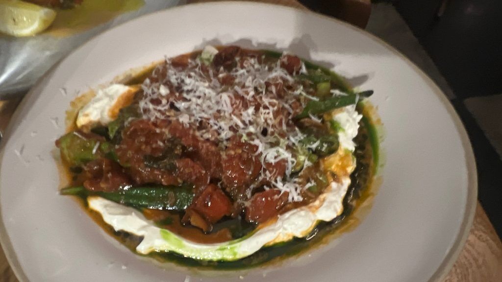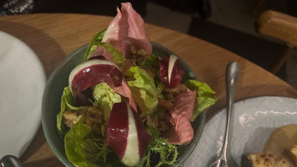 The Steak Bavette is hotter than our Beef Tataki however in any other case comparable. Now we have no-one accountable besides ourselves although, and, truly, no-one’s complaining. The steak is a luxurious medium uncommon and blends with celeriac purée. The Turbot Steak is delicate and agency and swims amongst seasonal greens in a ras el hanout butter sauce. Of our facet dishes, the Okra is a wealthy and unique and will effectively be promoted to a most important dish. With gradual cooked tomatoes which verge in the direction of ratatouille, a paprika aftertaste, a beneficiant portion of creamy labneh and grated cheese, it’s a filling showstopper. A crispy leafed salad is crunchy and recent; its beguiling pink leaves make it resemble a prototype for a Marc Quinn {photograph} or a Willy Wonka invention after Willy moved on from his chocolate manufacturing facility. There’s additionally an unexotic baked potato which is effectively performed and is unfold with a smattering of garlic and dill butter. If nothing else, it wins our sympathy vote, sitting because it does, barely lonely if not redundant on the facet of our facet dishes.