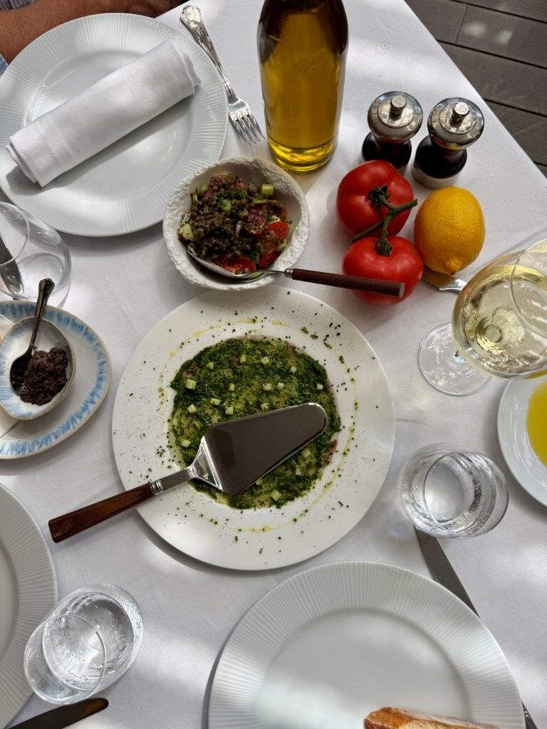 The Raspberry Punch combined Havana 3-year and 7-year rums with Chambord, Amaretto, St-Germain and Cointreau. A favorite within the restaurant gave the impression to be the La Petite Maison Limonade, a non-alcoholic and refreshing mixture of lemon and grapefruit with orange blossom and soda.