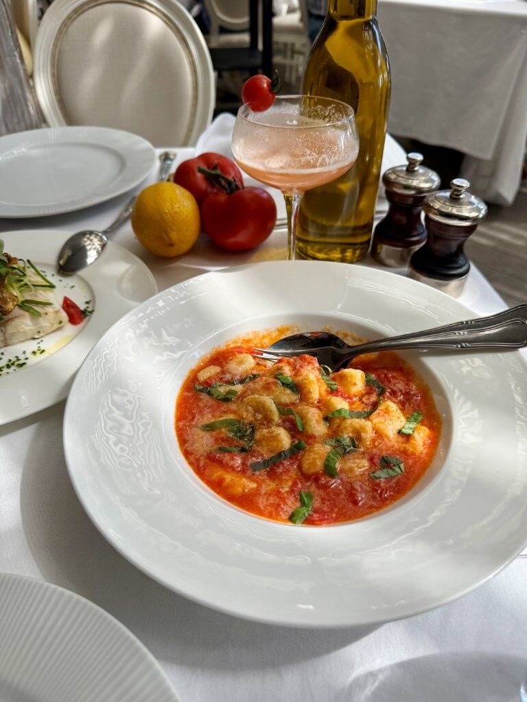 The grilled entrecôte, a beneficiant 400 g ribeye, got here sliced with its good band of fats effectively rendered. Actually spectacular. The bearnaise sauce was a delight. Parmesan gnocchi with tomato and basil could sound heavy but wasn’t, with the cherry tomato and garlic sauce tasting of summer time.