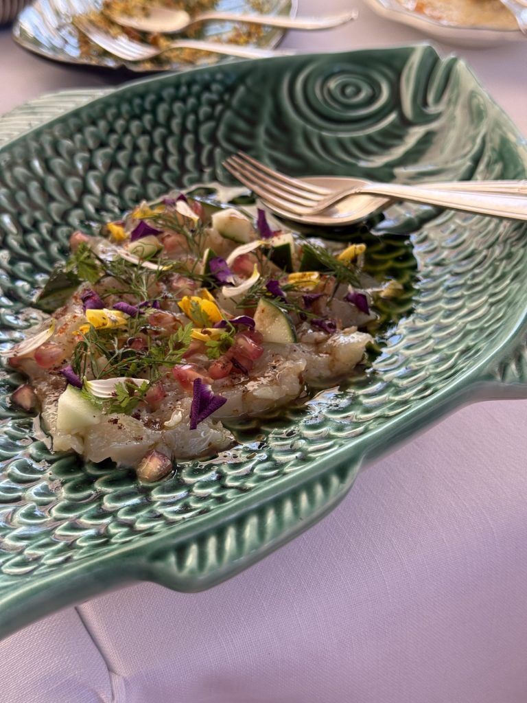 Our first plates embrace dill-marinated gravlax sea bream, lifted by cucumber vinegar, exquisitely introduced on a inexperienced ceramic dish, The Mimosa eggs are topped with salmon roe and slightly dill, and the artistic Wild squid carbonara replaces pasta with skinny ribbons of squid, tangled by a lightweight carbonara that takes a refined trace of smoked beef. A golden egg yoke rests on high, able to be stirred in, coating every strand. The sommelier suggests a Moroccan white, Grande Cuvée Vin Blanc AOG Zaër.