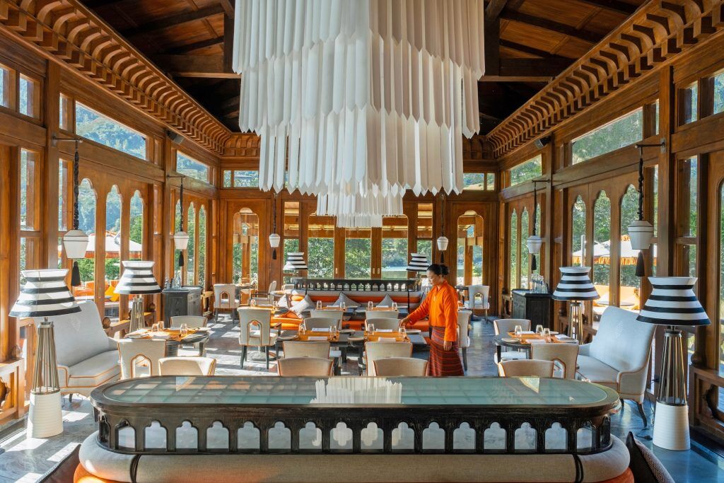 Soma, the all-day eating room, serves regional and worldwide dishes. Alchemy Home, a restored heritage house, serves conventional Bhutanese meals in a communal, hands-on model. Cooks conjure up yak curries, chur jaju (a soup of river weeds and cheese) and ema datshi (Bhutan’s iconic chilli and cheese dish) in clay pots. Sura is an unique corridor for personal gatherings of royalty and VIPs; Ati, a magical treehouse cabin overlooking a gorge, gives bespoke barbecues in a pine forest. Every venue celebrates Bhutan’s flavours, tradition and sense of place.