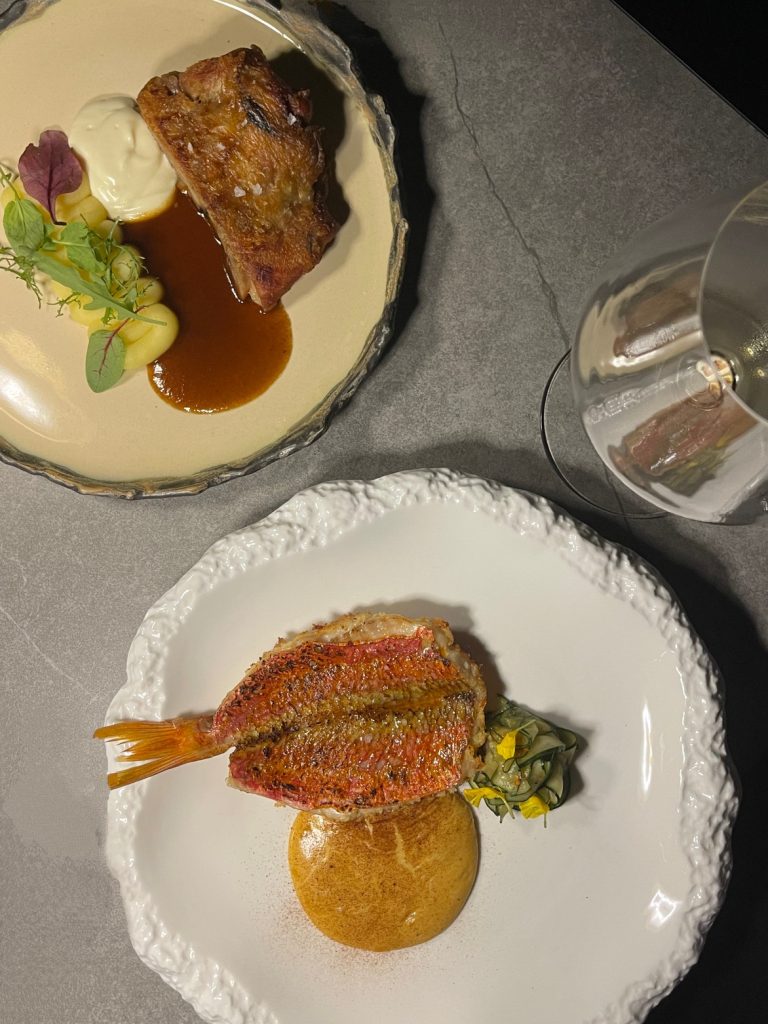 The primary dishes of roasted Malaga goat with payoyo cheese sauce and the native ‘salmonete’ pink mullet are elevated by their precision preparation and artistic garnishes just like the Japanese cucumber salad.