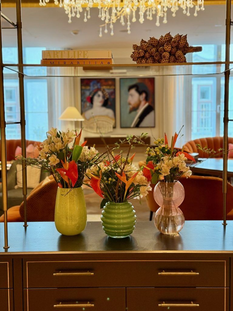 Up one stage, the elegant foyer is a collection of intimate salons fairly than a single reception house, with curved velvet sofas, sculptural lighting fixtures and cabinets organized with books and punctiliously chosen objets. The impact is residential, heat and quietly glamorous. Salon Aurelie, the foyer lounge, is the jewel. Hand-painted murals of palm fronds, tropical flowers and butterflies by Austrian artist Marie Hartig wrap the partitions, an homage to Vienna’s magnificent Palmenhaus conservatory. Crystal chandeliers by Lobmeyr solid honeyed mild onto Backhausen textiles. A ceramic vase set up presents a chic nod to the Danube.
