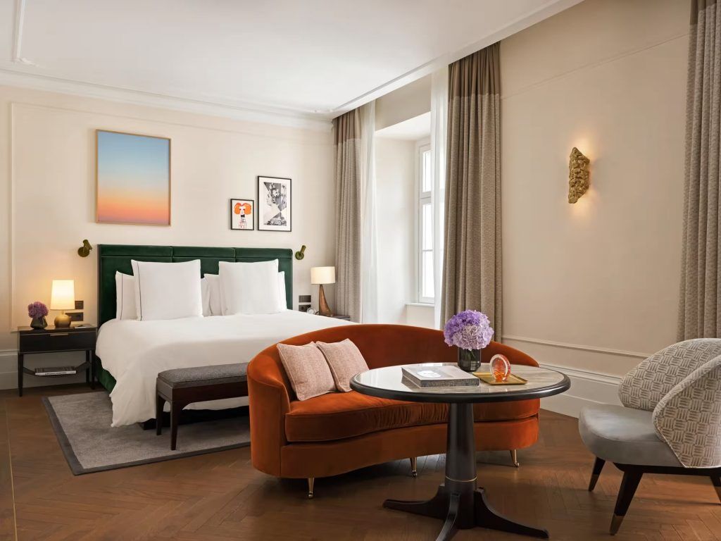 Tender floral components and murals reference regional Viennese historical past, together with nods to Schönbrunn Palace. The Hoffmann Home, the presidential suite, contains a chandelier with hand-cut Swarovski crystals. At each flip, the design tells the story of town, connecting you to its inventive and architectural heritage whereas one way or the other additionally feeling up to date and related.