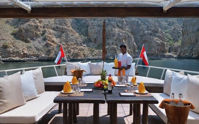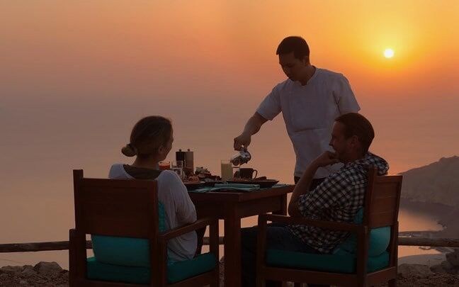 At Zighy Bay, meals isn’t served; it’s staged.