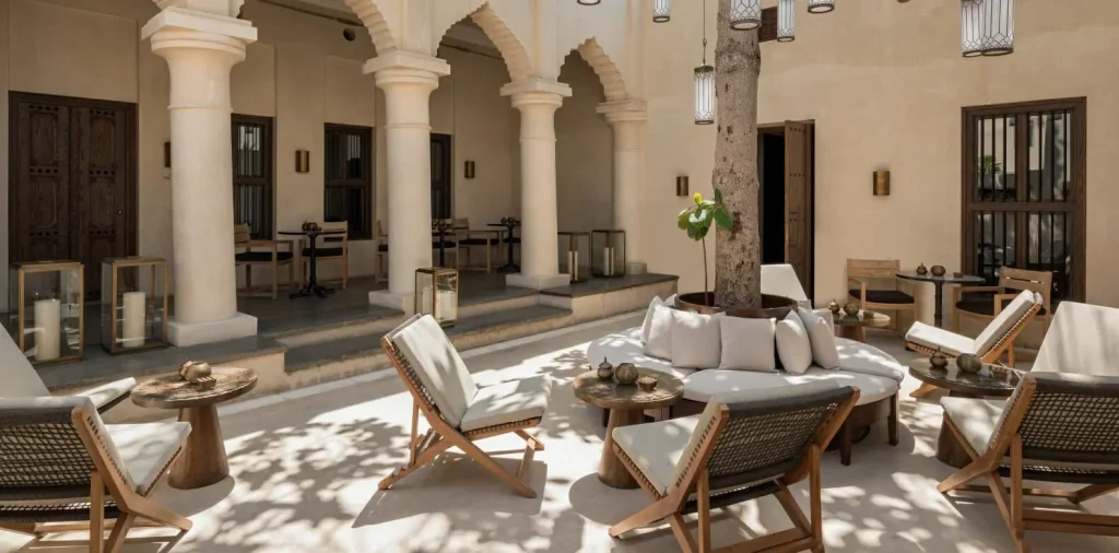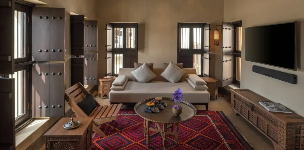 The story of The Chedi Al Bait is inseparable from the story of Sharjah itself. ‘Al Bait’ actually means ‘the house’ in Arabic, and the restored historic homes, which date again over 100 years, have been as soon as house to outstanding native households – retailers, students and neighborhood leaders whose lives formed Sharjah’s function as a buying and selling and cultural centre alongside the Gulf. Somewhat than erasing the properties to create one thing new, the restoration targeted on preservation – thick coral-stone partitions, wood beams, wind towers (barjeel) and inside courtyards rigorously conserved and repaired utilizing conventional strategies and strategies. Historical past is alive within the structure, but up to date requirements of consolation have been subtly integrated.