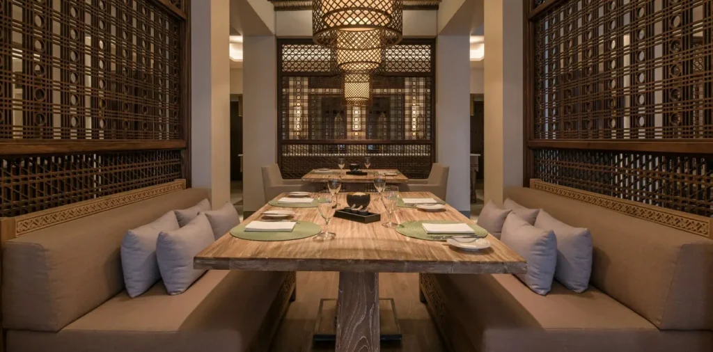 Eating at The Chedi Al Bait is intentionally measured and nicely thought-about, echoing the resort’s wider strategy to luxurious. Somewhat than overwhelming with alternative, the eating places are distinct but cohesive, every providing a unique ambiance whereas sustaining the identical sense of restraint, high quality and a spotlight to element. On the centre of the property is The Restaurant – a sublime, all-encompassing eating area set throughout the resort’s restored heritage structure. The interiors mirror the calm palette and beneficiant proportions discovered all through the resort, whereas the adjoining open-air courtyard provides a relaxed, atmospheric various.