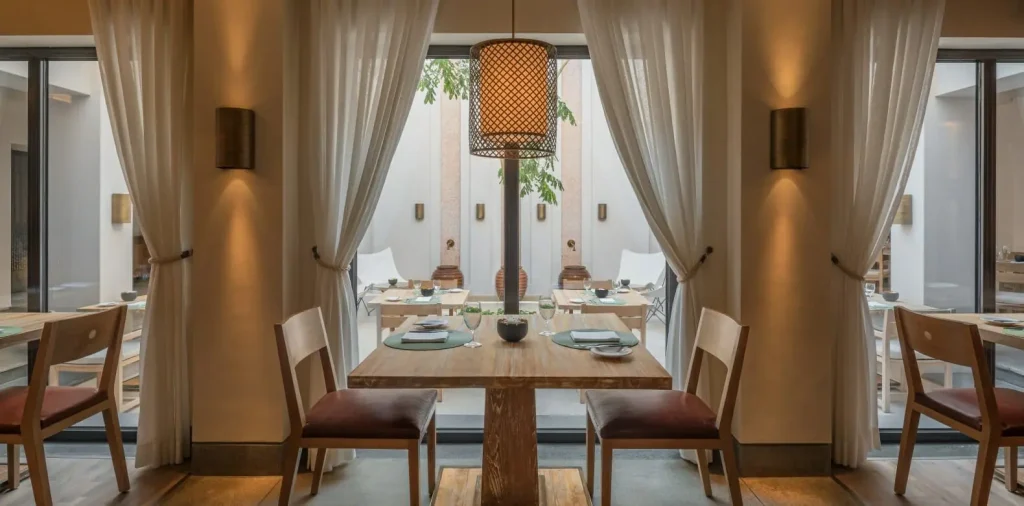 The menu attracts on a broad vary of worldwide influences, unified by considerate execution and a concentrate on steadiness somewhat than overt showmanship. For a extra up to date counterpoint, NOMANI gives a refined fusion of Japanese and Korean delicacies. Intimate in scale and trendy in really feel, it supplies a sharper, extra destination-led eating expertise whereas remaining aligned with the resort’s understated sensibility. Finishing the trio, The Café gives a relaxed setting beneath a fantastically preserved wind tower – very best for espresso, tea and lighter bites all through the day. Collectively, the eating places type a cohesive eating expertise – contrasting but complementary.