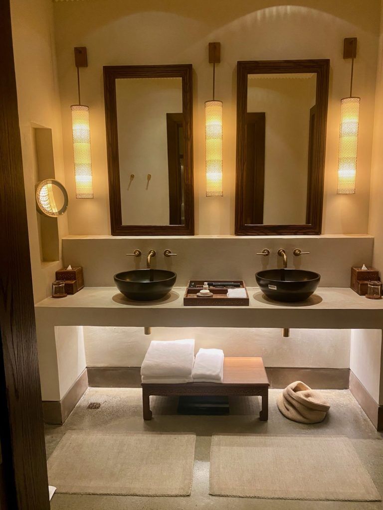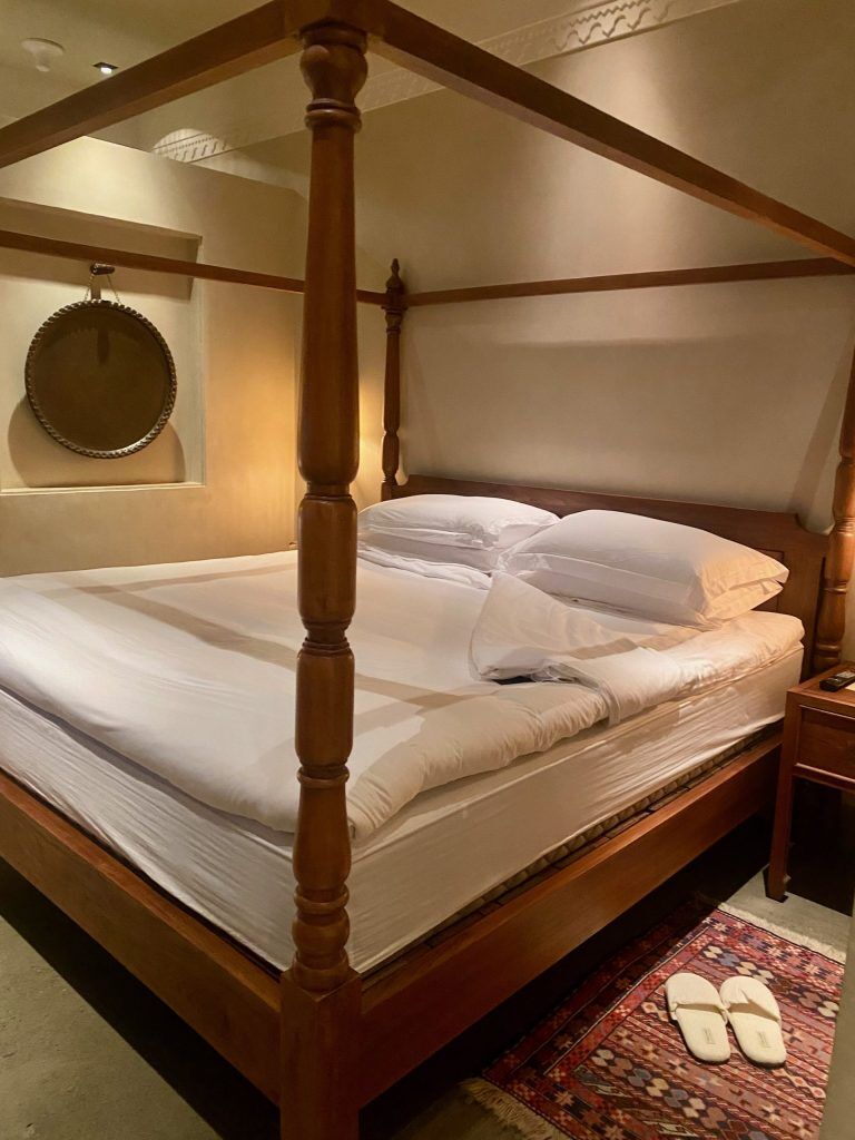 I stayed in one of many Al Bait Heritage Rooms. A way of area struck me from the second I stepped inside. Excessive ceilings with wood beams, thick heritage partitions and beneficiant proportions gave the room a right away feeling of openness, avoiding the enclosed ambiance that historic buildings can generally impose. It felt like a room designed to be correctly lived in somewhat than merely slept in. Darkish wooden furnishings introduced a way of heat and steadiness. Strong, fantastically crafted and understated, they gave the room a sure construction which felt neither overwhelming nor in any method dominant. This contrasted completely with a palette drawn from pure tones – sand, stone, smooth browns and muted lotions. A separate dressing space offered beneficiant storage, with wardrobes and drawers hewn from the identical darkish wooden, guaranteeing that all the things had its place with the outcome that the principle bed room remained a serene, uncluttered area.