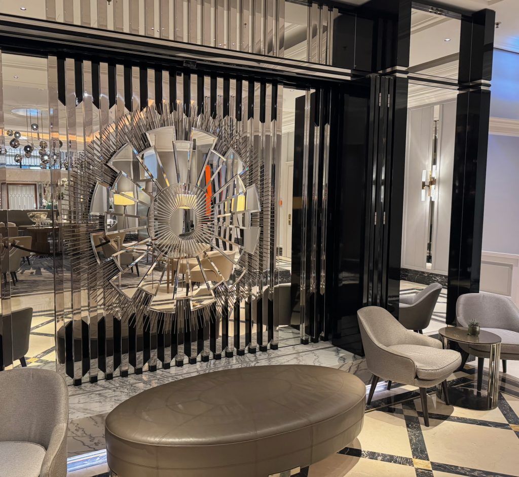 Curving across the central staircase and behind, the Lounge is the social coronary heart of the resort from morning to night, serving afternoon tea from the in-house pâtisserie together with night drinks. At exactly 6 pm every night, a big mirrored artwork set up within the lounge transforms from a solar to a moon, accompanied by champagne poured right into a pyramid of coupe glasses and a gramophone taking part in a rendition of Puttin’ on the Ritz.