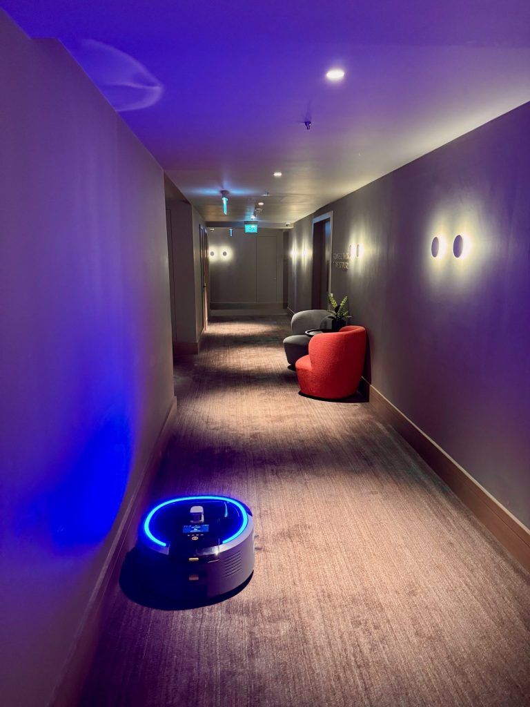 Leaving the room for breakfast the next morning, I used to be fairly taken with the robotic hoover giving off a neon hue and silently gliding by the hall. Consistent with the lodge’s tech-forward touches, the property runs totally off LED lighting whereas photo voltaic panels scale back its carbon footprint, and the three sky terraces double as gardens supplying herbs and crops to the eating places.