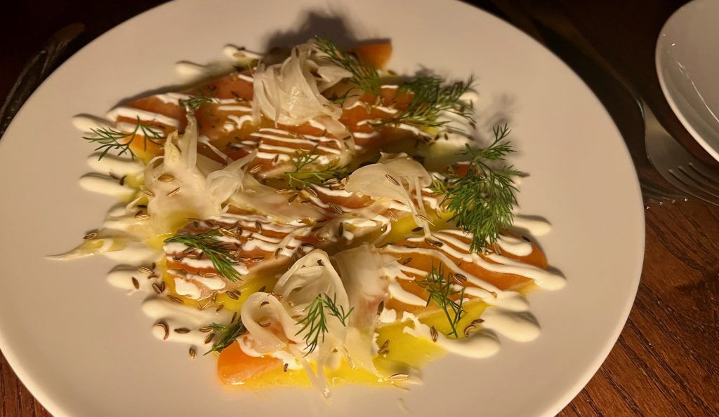 A prolonged desk to our proper seems to be like an workplace celebration that misjudged Christmas however, nonetheless, behaves itself admirably. In any other case, tables are spherical and filled with {couples} and pals protecting their counsel quietly and calmly. The cocktail checklist is in depth, mixing classics with signatures however the ‘Mixmaster 2024 Winners’ is probably probably the most tempting. A ‘Tyreece’ vies for consideration with an ‘Angelos’ however each are outshone by a ‘Rebecca’ which has an ingredient this reviewer has by no means encountered in a cocktail earlier than; Neck Oil Session IPA. Combined with Tanqueray gin, camomile, cinnamon, honey, ginger and lemon it’s a curious and tempting prospect however my visitor and I bottle it for bubbly options. I hit the Joseph Perrier, Cuvée Royale from Chalons-en-Champagne and my companion mixes it up with a home Nyetimber Basic Cuvée from East Sussex. The previous is dense, the latter mild and frisky and for sure each hit their actual mark.