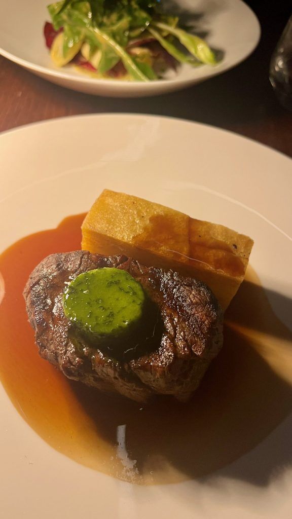 Strozzapreti with Winter truffle is a troublesome one to show down for mains, however we do stay in a hearty, seasonal realm, particularly with the Fallow Deer. Lower into slices and served with gravy and celeriac purée, it’s the flourish of cooked blackberries, nevertheless, which add a novel contact and a lovely visible drama to the deer’s medium uncommon flesh. The purée is velvety and couldn’t be smoother and the deer is surprisingly tender for such sport, doesn’t over-power, is sort of delicate and advantages from an intriguing, near fruity aftertaste. A British burger with chilli jelly additionally tempts however I go for Filet Mignon as an alternative, arguably a burger for the moneyed. It’s a daring, chunky piece of beef as darkish because the January evening with a slowly melting spherical portion of garlic and parsley butter on its high. What seems to be like an enormous chip, however is definitely a terrine made up of a number of skinny slices of potato, accompanies. A pink wine gravy surrounds each and for couple of minutes, our desk falls silent as we recognize our decisions.